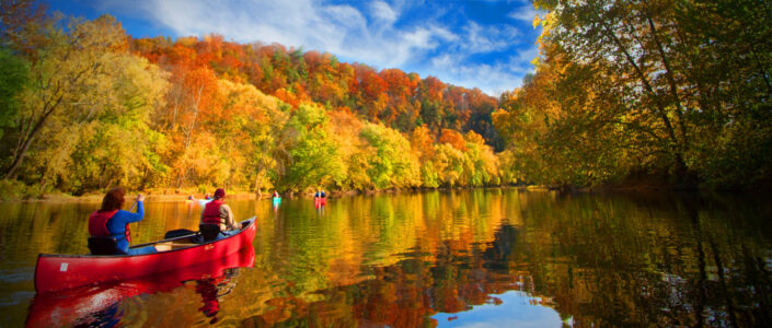 For kayaking and canoeing in autumn, your best choice is the James River. Flanked by leafy hills and mountains, this wide river is typically runnable year round. Paddlers looking for a taste of whitewater can tackle the low-key rapids at Balcony Falls.
