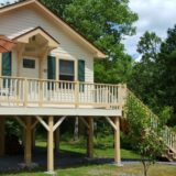 Serenity Cabin is positioned near the tree tops on our mountain stream and has a contemporary feel with the rich warmth of natural woods. Full Breakfast at the Hummingbird Inn is included with your stay.