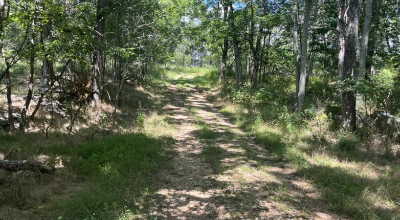 Hike from small parking area beside Lexington Public Works Department down to the Maury River on an unimproved driveway. The driveway extends northeast through mixed cedar and hardwood forest surrounded by limestone outcrops with the Maury River.